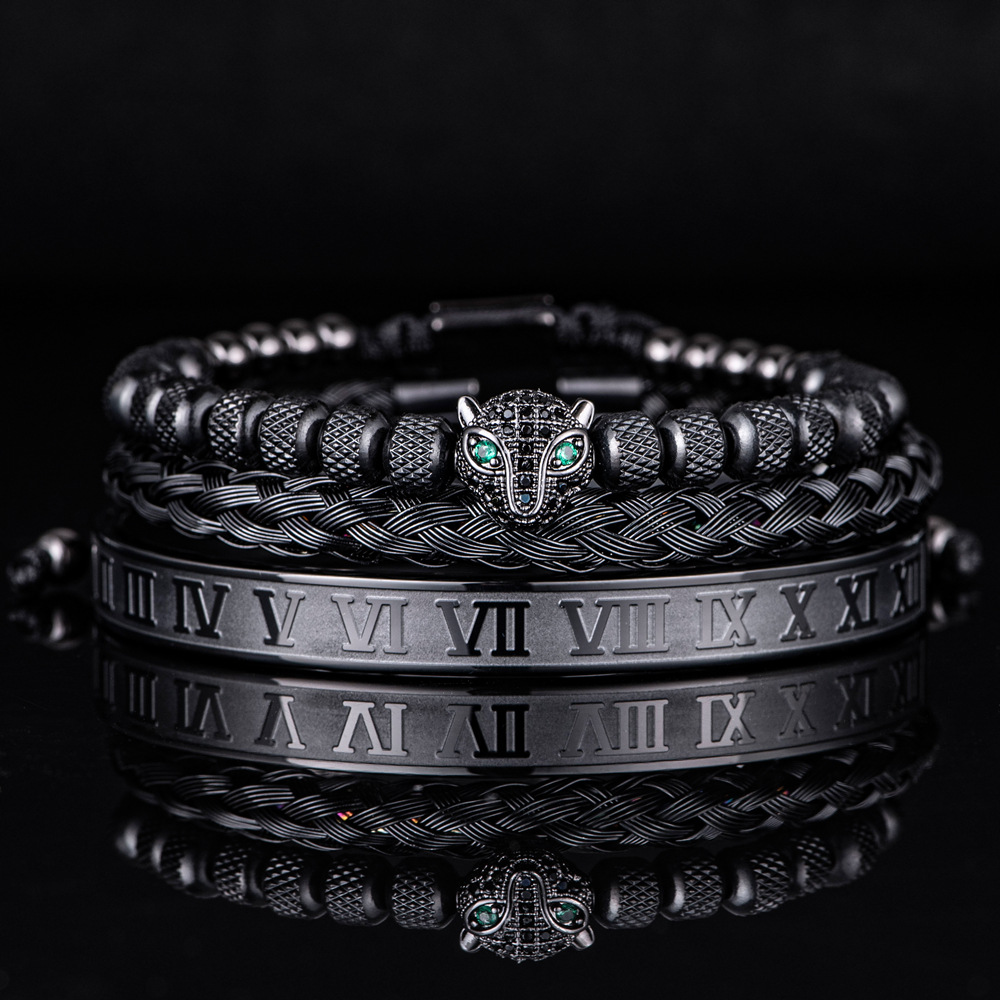 Leopard Head Bracelet Suit Mesh Pineapple Beads Roman Bracelet