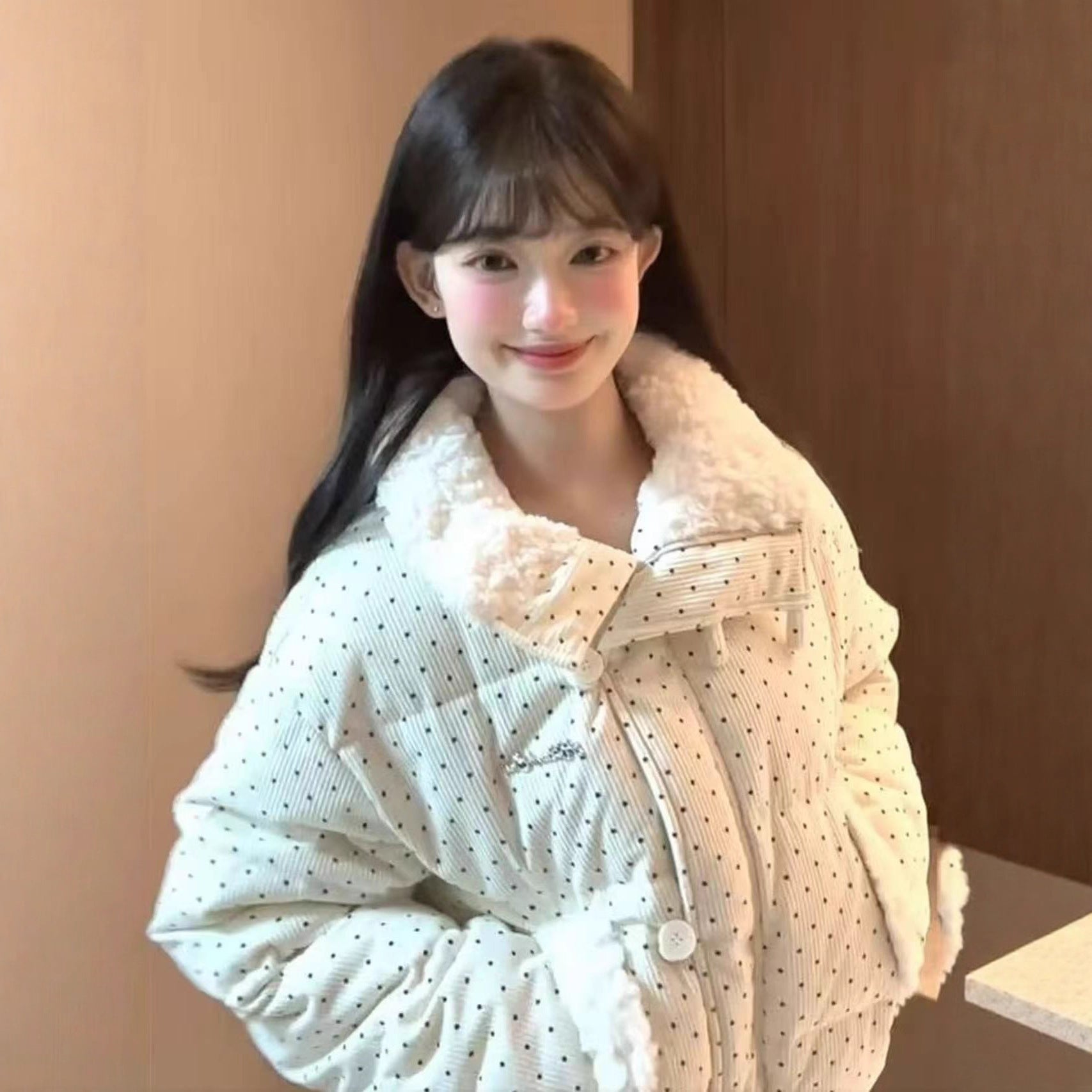 Thickened Warm And Age-reducing Fresh Sweet Stripes Cotton-padded Coat