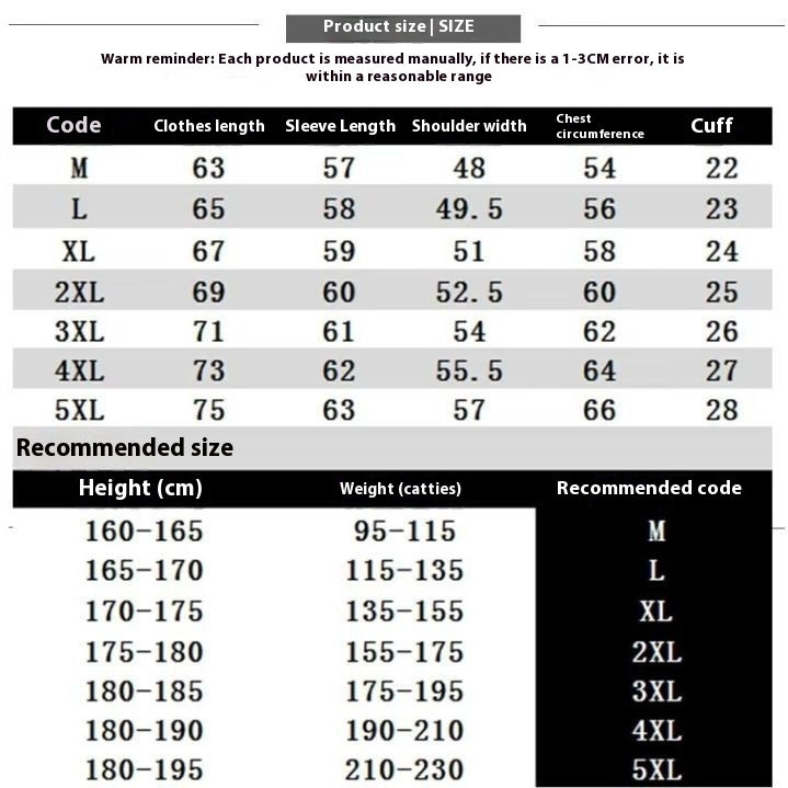 Size: M [recommend 42.50kg-57.50kg],L [recommend 57.50kg-67.50kg],XL [recommend 67.50kg-77.50kg],2XL [recommend 77.50kg-87.50kg],3XL [recommend 87.50kg-97.50kg],4XL [recommend 95.00kg-105.00kg]],5XL [recommend 105.00kg-115.00kg]]