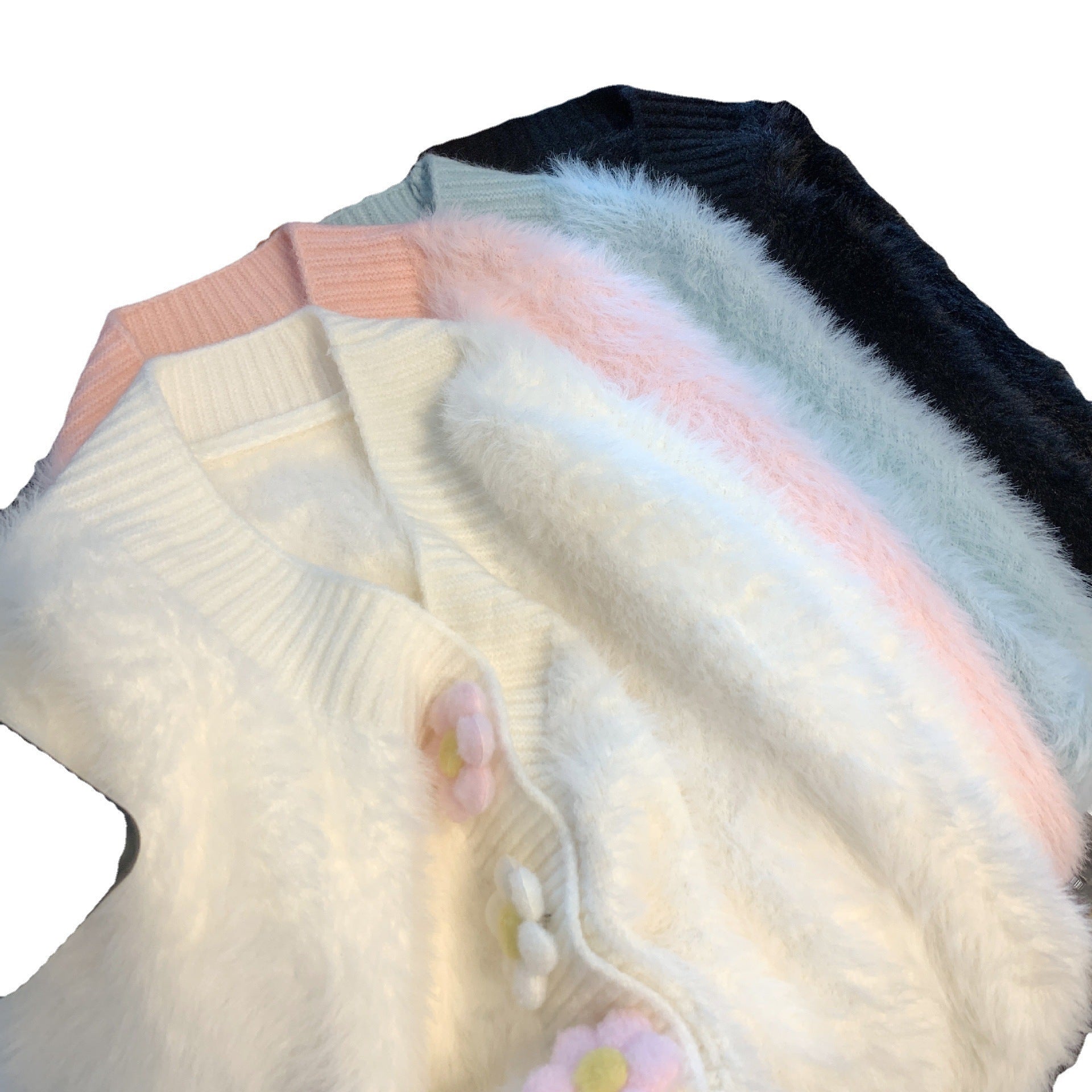 Women's Mink Fur Knitted Three-dimensional Flower V-neck Sweater Coat